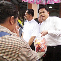 คุณพ่อมอบสิ่งของช่วยผู้ประสบภัยน้ำท่วม